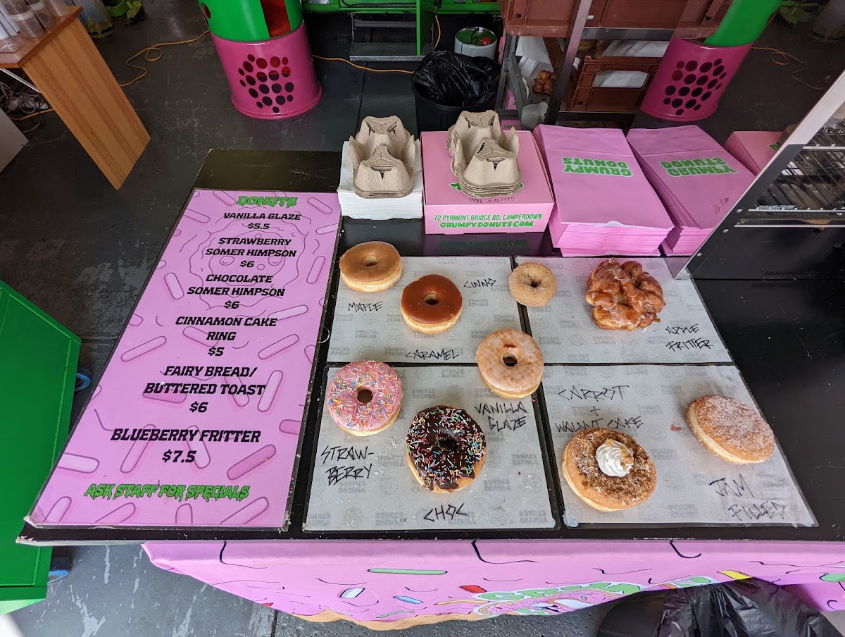 Located at 379 Princes Hwy in St Peters, Grumpy Donuts is a delightful café that specializes not only in donuts but also in hearty breakfast burritos. Their menu features tempting fortnightly specials that showcase creativity, like the Finger Bun with raspberry icing and Apple Crumble topped with caramel drizzle, both priced at A$9.50.